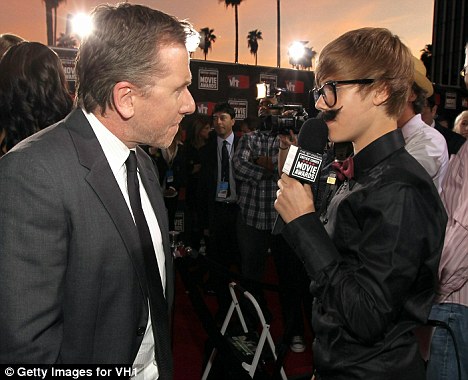 Despite his large fake moustache and big glasses, Justin Bieber wasn’t fooling anyone as he made his red carpet reporting debut at the Critics’ Choice Awards. Perhaps he should have changed his distinctive brushed forward hairstyle if he was going to stay incognito. The 16-year-old Canadian-born singer wore his disguise throughout the evening as he conducted a series of celebrity interviews at the Hollywood ceremony on Friday.